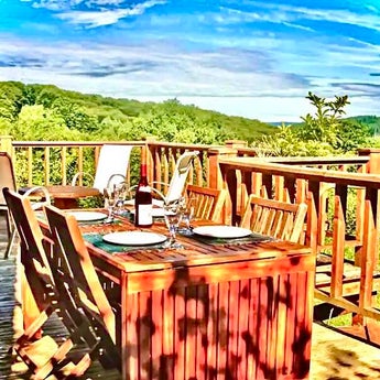C'est l'heure de l'apéro sur la grande terrasse. Laissez-vous imprégner par la nature et le calme qui vous entourent!